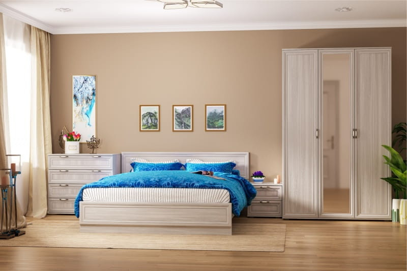 —Спальный Гарнитур "Бьянка" МДФ Ясень Анкор Светлый